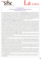 Chaque mois, une lettre d'information est éditée : actualités politiques, agenda, réflexion.
